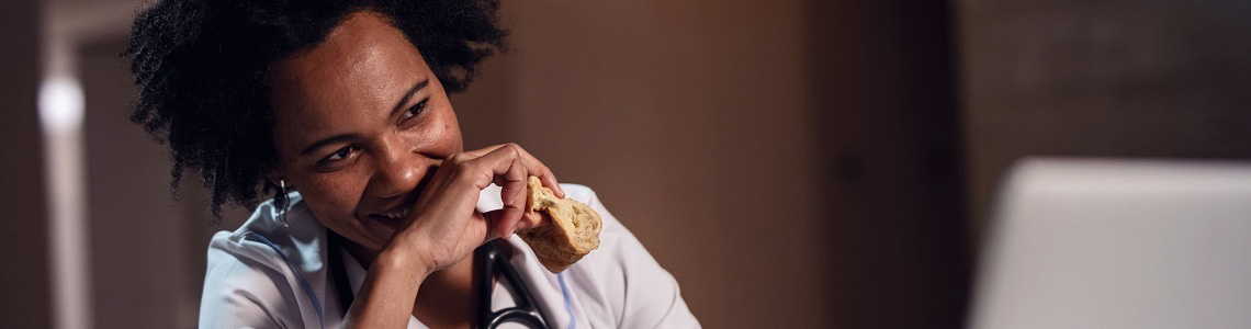 Ontbijt u ’s avonds voor u de nachtdienst ingaat? Eet liever een warme maaltijd. De nachtdienst kost minder energie als u uw eet-ritme zo goed mogelijk aanhoudt. ’s Morgens ontbijten, ’s avonds dineren. Eet smakelijk.